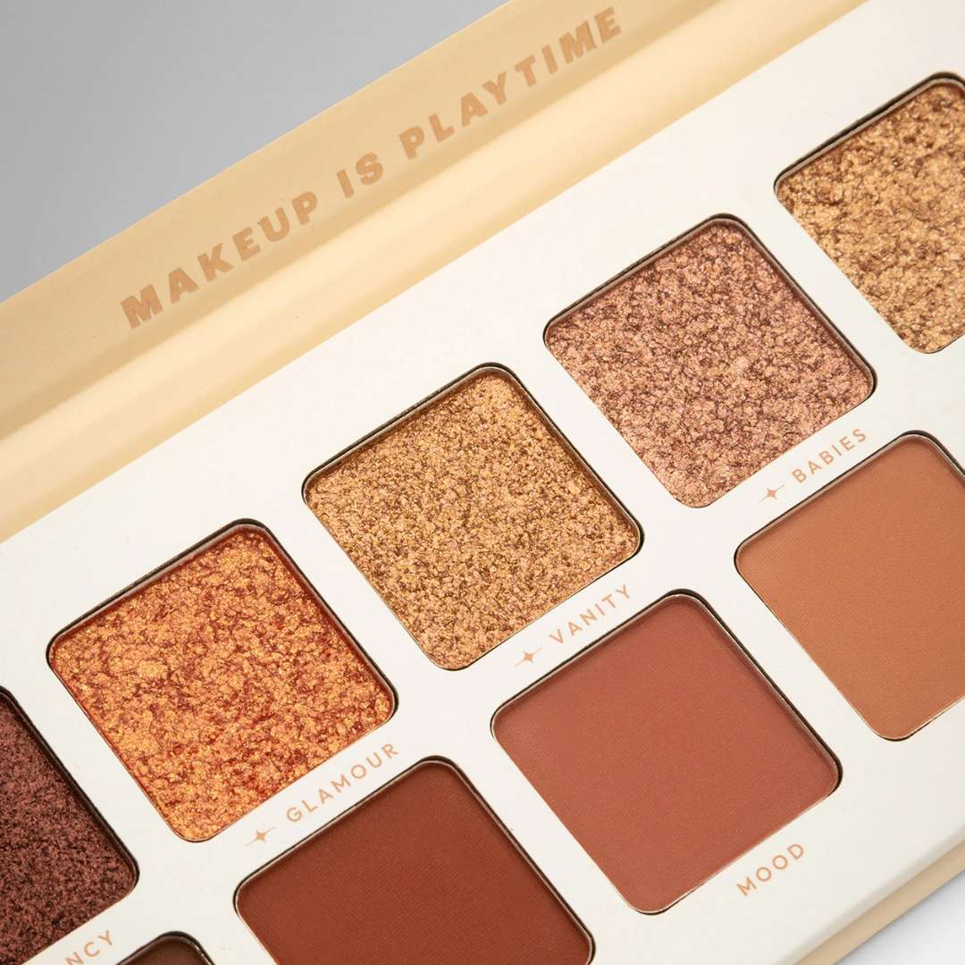 La paleta Give Me Glam fusiona tonos cálidos y sofisticados con una fórmula de alta pigmentación y larga duración. Sus 12 sombras en acabados mate, shimmer y aperlado están formuladas para difuminarse sin esfuerzo y brindar un acabado profesional desde la primera aplicación.