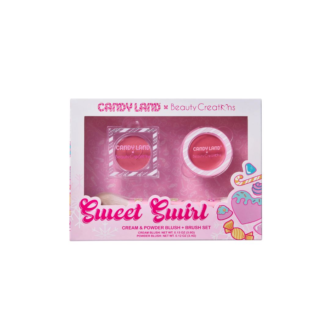 Set de la colección Candy Land que combina dos fórmulas de rubor —crema y polvo— junto con un par de brochas diseñadas para una aplicación uniforme. El rubor en crema ofrece un acabado jugoso y natural, mientras que el rubor en polvo aporta un toque suave y modulable para sellar o intensificar el color.